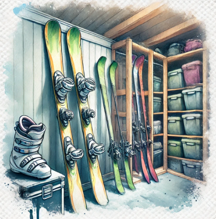 - 스키나 보드는 수직으로 세워두거나, 눕혀 보관해야 뒤틀림을 방지할 수 있어요.